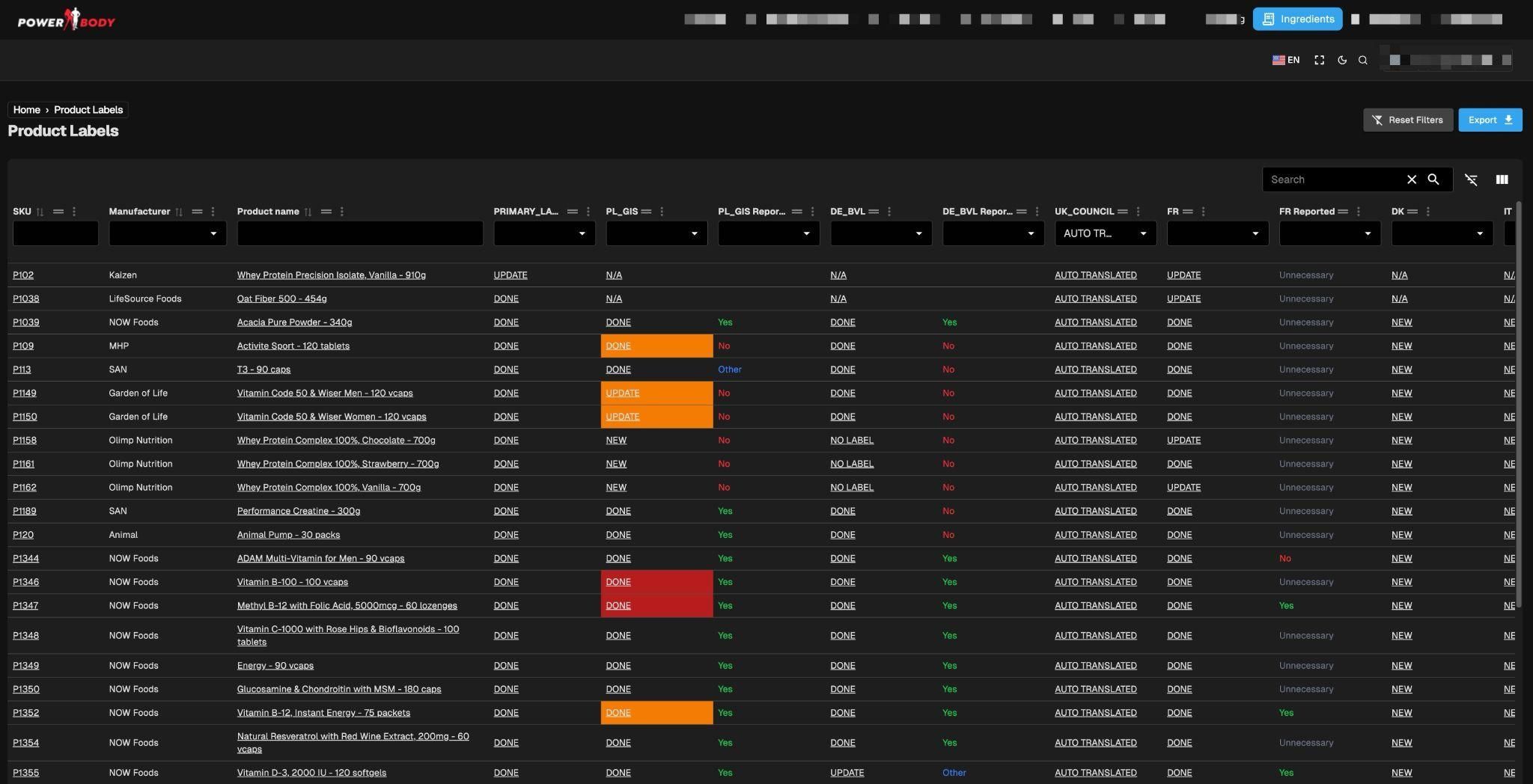 Dotychczas w PowerBody proces przygotowania etykiet był żmudny i rozproszony. Ten sam produkt trafiał jednocześnie na rynek polski, niemiecki, brytyjski, duński i włoski - a każdy z nich wymagał osobnej wersji językowej oraz dostosowania do lokalnych przepisów. Czasochłonne tłumaczenia, przeliczanie wartości odżywczych i wielokrotne korekty zwiększały ryzyko rozbieżności i wydłużały czas pracy.
