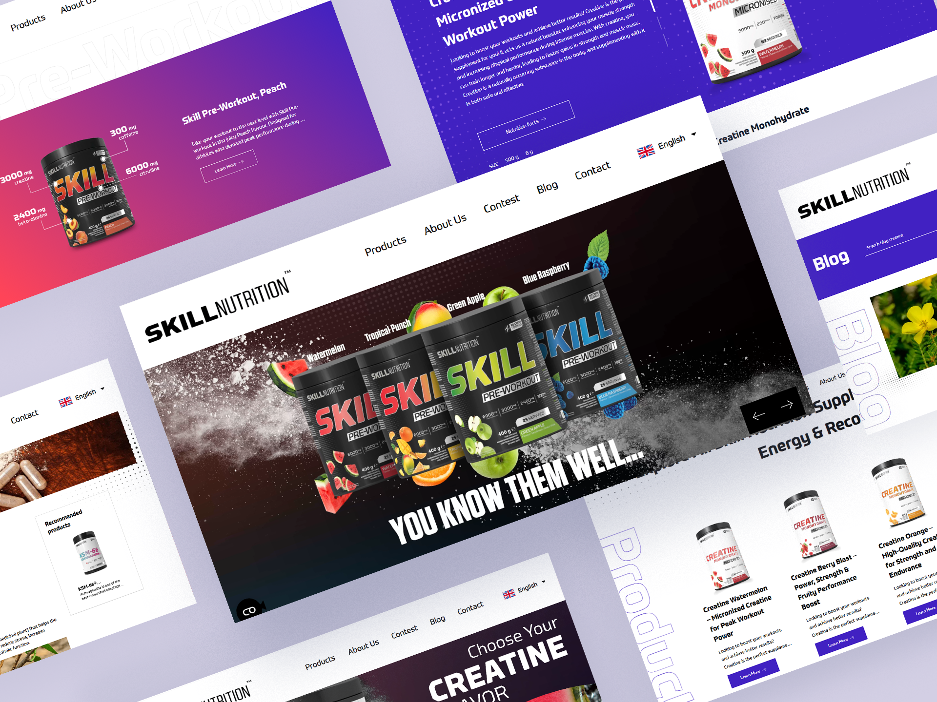 Korzystając ze Strapi CMS stworzyliśmy zestaw modułowych sekcji dopasowanych do tożsamości marki, w tym stronę produktu, zakładkę O nas, bloki opinii oraz komponenty sprzedażowe. Taka struktura pozwala zespołowi Skill samodzielnie budować podstrony i landing page’e z gotowych elementów, uzupełniając je treścią, grafikami i blokami contentu przechowywanymi w kolekcjach Strapi.